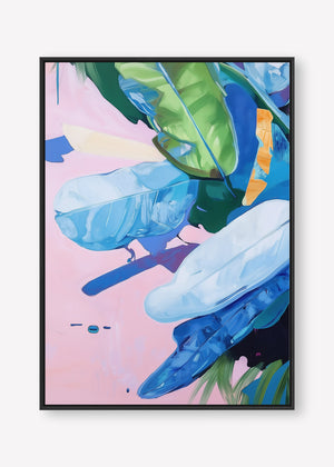 Lush, ethereal flora blooms in a vibrant dreamscape of swirling pinks, blues and expressive textures.