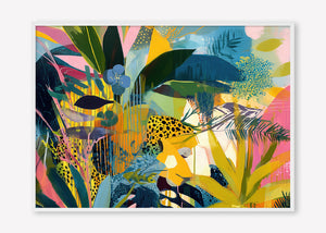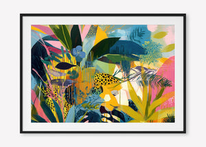 Lush foliage and vibrant patterns intertwine in a textured dreamscape of tropical colours and forms.