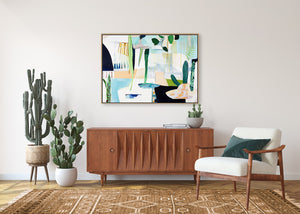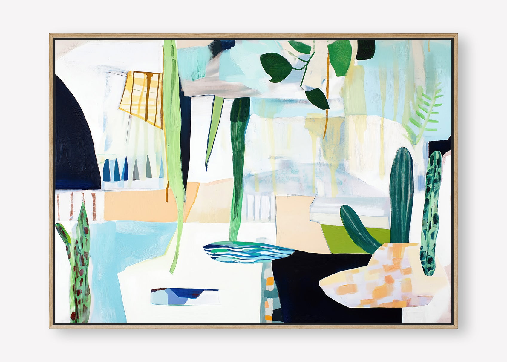 Embrace the beauty of our oak canvas box frames made with solid Tasmanian Oak for a stunning gallery look. Read more about our materials. Art shown is Haven.